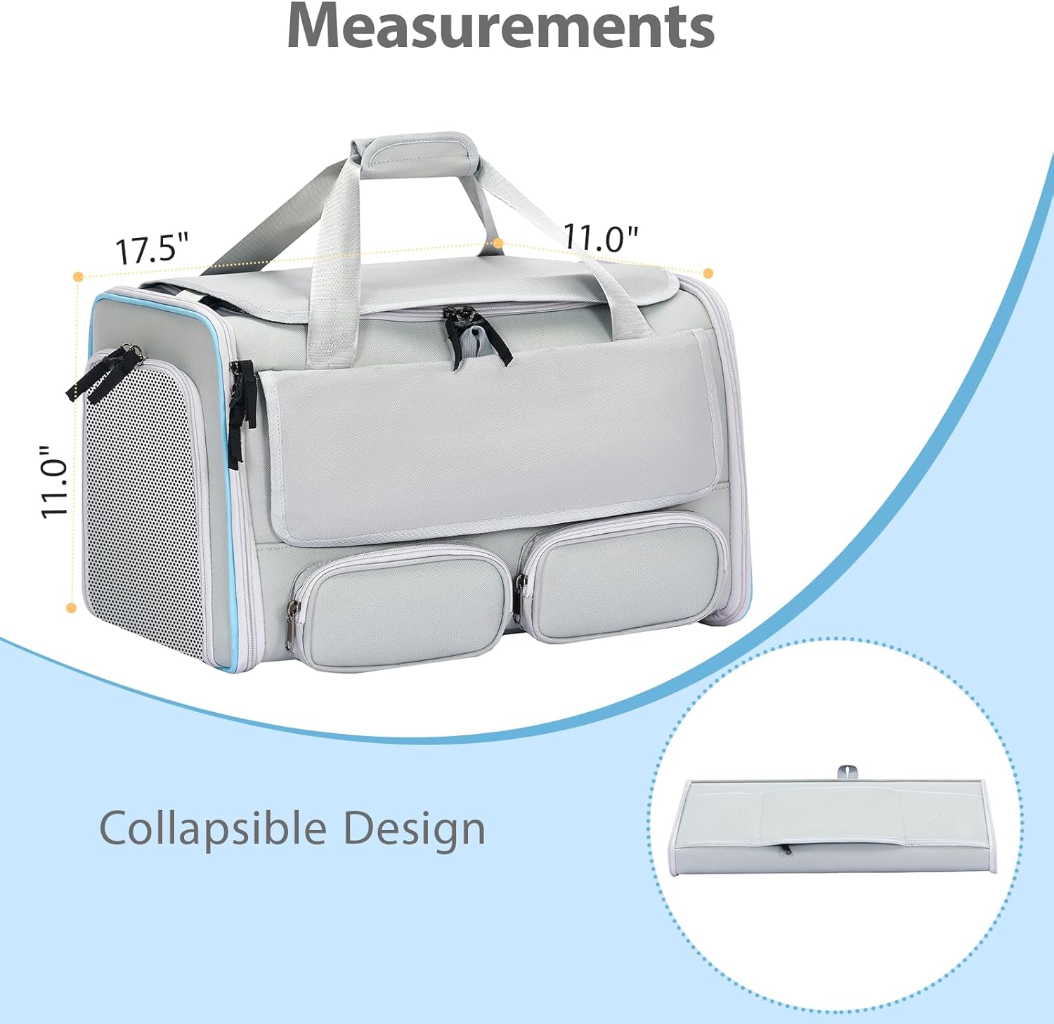 [Spacious & Comfortable Design]: With a roomy interior measuring 17.5″ x 11″ x 11″, this carrier provides ample space for cats or small dogs up to 15 lbs. Pets can sit, lie down, and move comfortably without feeling cramped.
