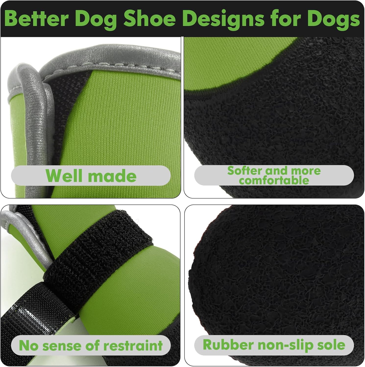 ADJUSTABLE: Easy to put on / off. This dog shoe is softer and lighter than regular shoes. It can fit the dog’s feet better.